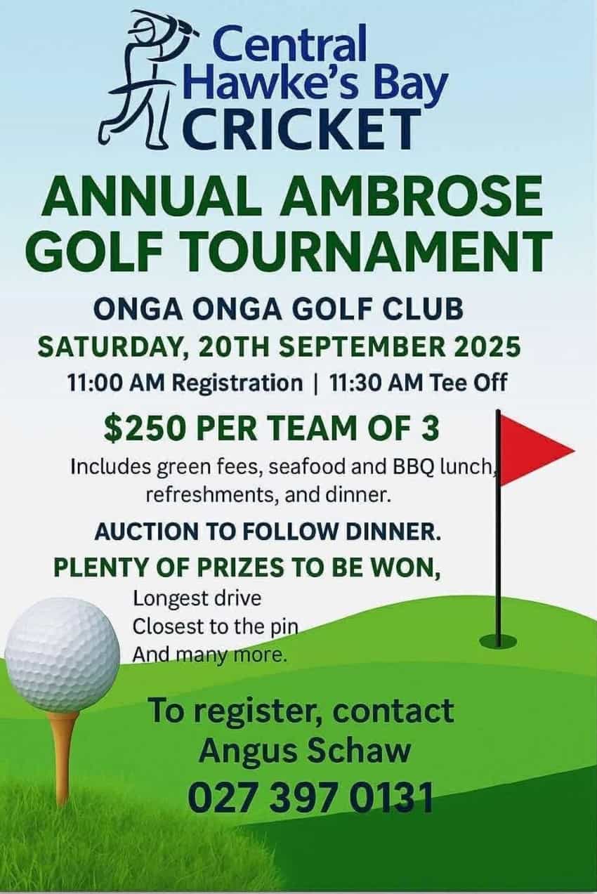 Central Hawkes Bay Cricket Annual Ambrose Golf Tournament SOLD OUT
